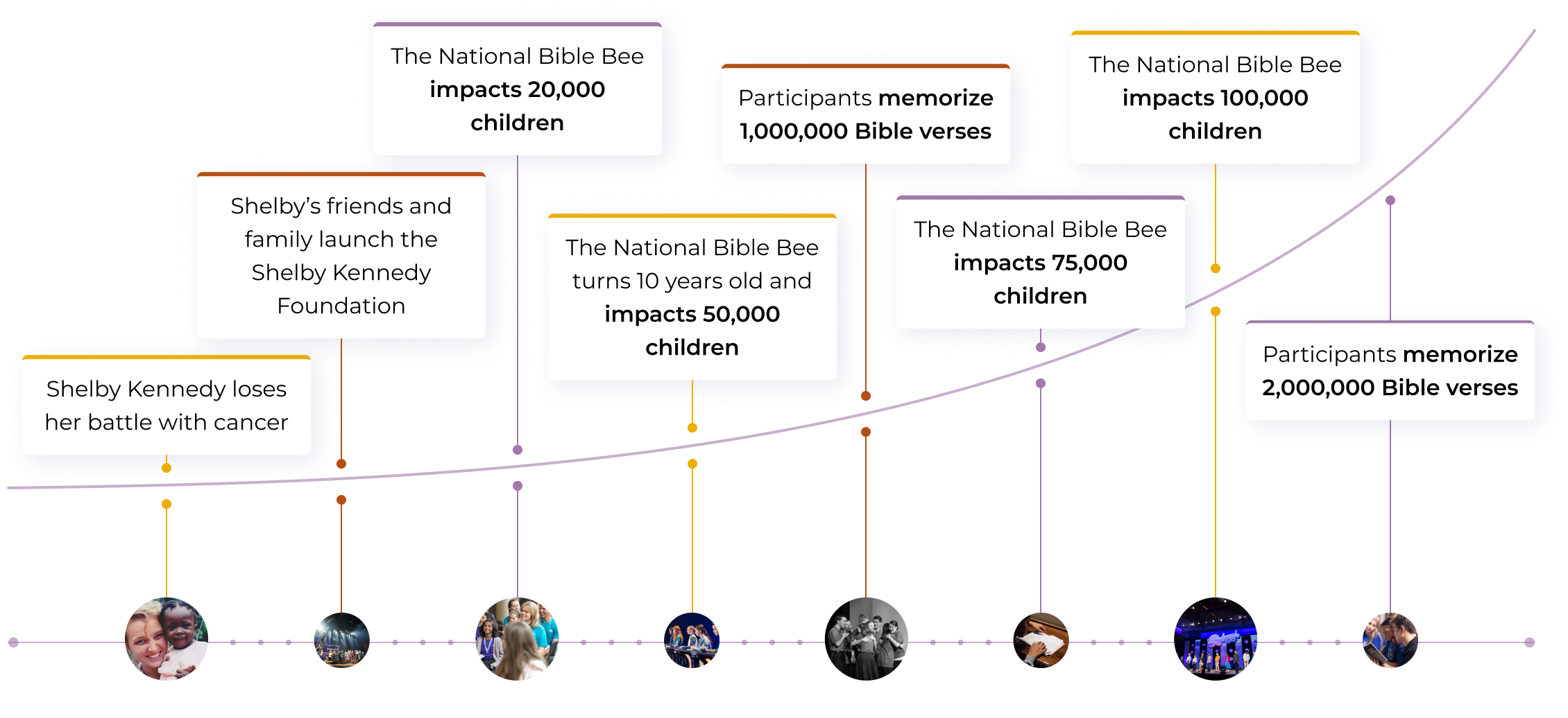 In 2009, the Shelby Kennedy Foundation began the National Bible Bee to honor the life and memory of Shelby Kennedy. On May 31, 2005 at the age of 23, Shelby went home to be with the Lord after an intense struggle with cancer. Much of what kept Shelby’s joy in her last days was time spent studying the Word of God.